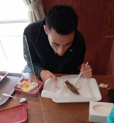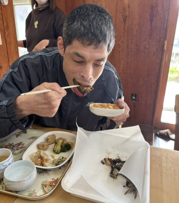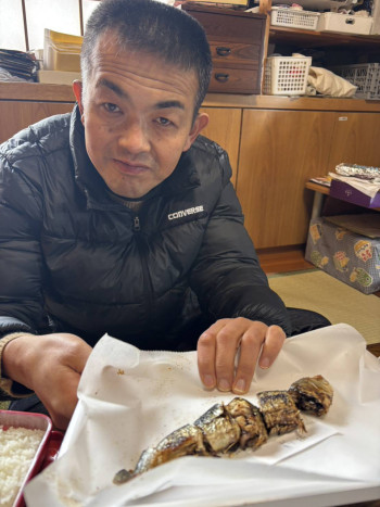 炭火焼きにし、昼食と一緒にいただきました!